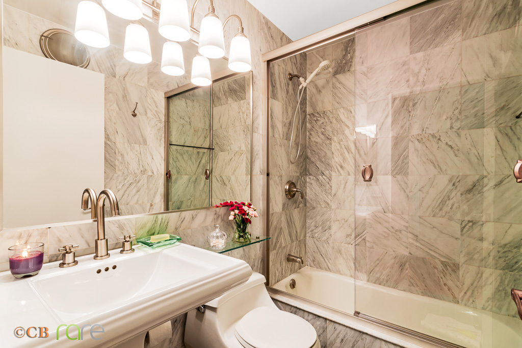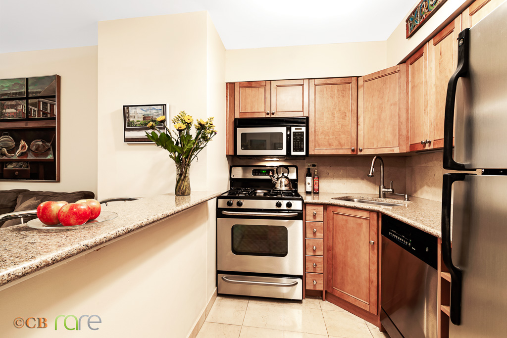 Cooks will delight in the open kitchen with full-size stainless-steel appliances that include a built-in microwave, spacious Caesar Stone counter tops, and marble floor. Luxuriate in your bathroom lined with Italian white Carrara marble and grey slate floors; redesigned to include its own super-sized medicine cabinet.